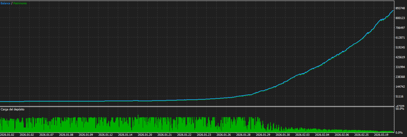 - Número de operaciones, winrate y estado del EA (LIVE / OFF).