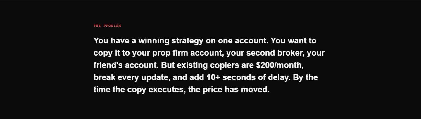 Has encontrado la estrategia. Ha demostrado que funciona. Pero copiarla a su segunda cuenta, su cuenta financiada, su cuenta de inversor... ahí es donde se viene abajo. La copia manual es lenta, propensa a errores e imposible de escalar. Se le escapan entradas, olvida mover los stops y cierra la posición equivocada.