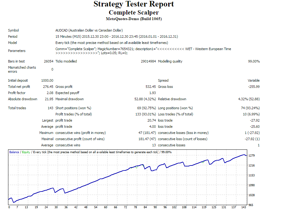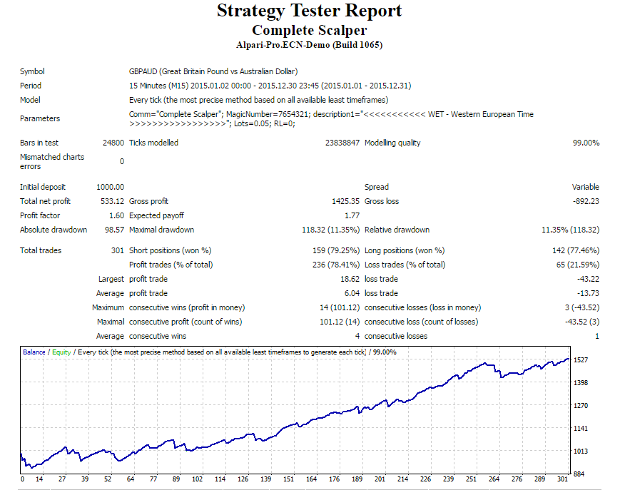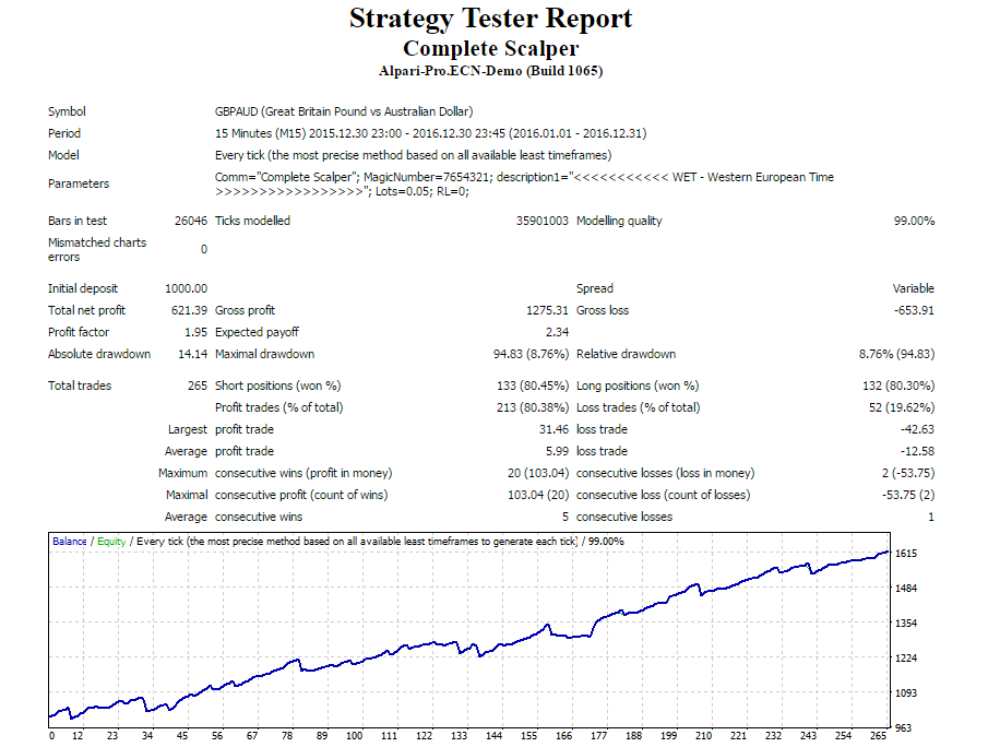 thank you for sharing your EA with the community. I'm currently testing the free versions of the Scalper GBP and the Cross Scalper and both show very impressive results! But all your full versions, including this Complete Scalper, have been backtested on a 1.000 USD account whereas the free versions have been tested on 100 USD accounts.