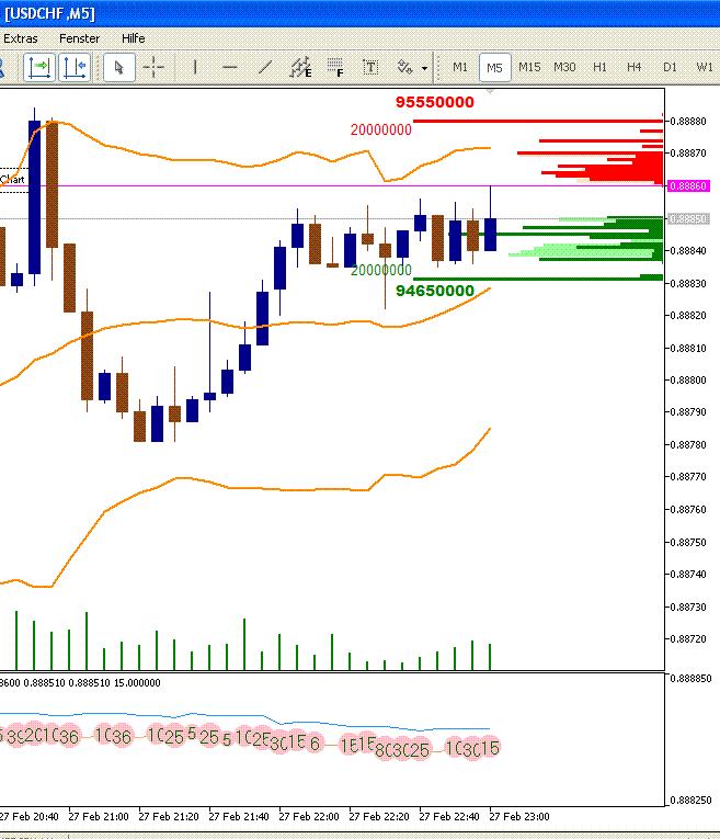 Внизу три линии - линия бид, линия аск и линия последней цены.