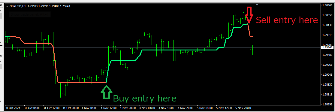 However when the Trend switch from buy to sell or sell to buy (Line color change), buffer 5 delays 1bar for SELL.