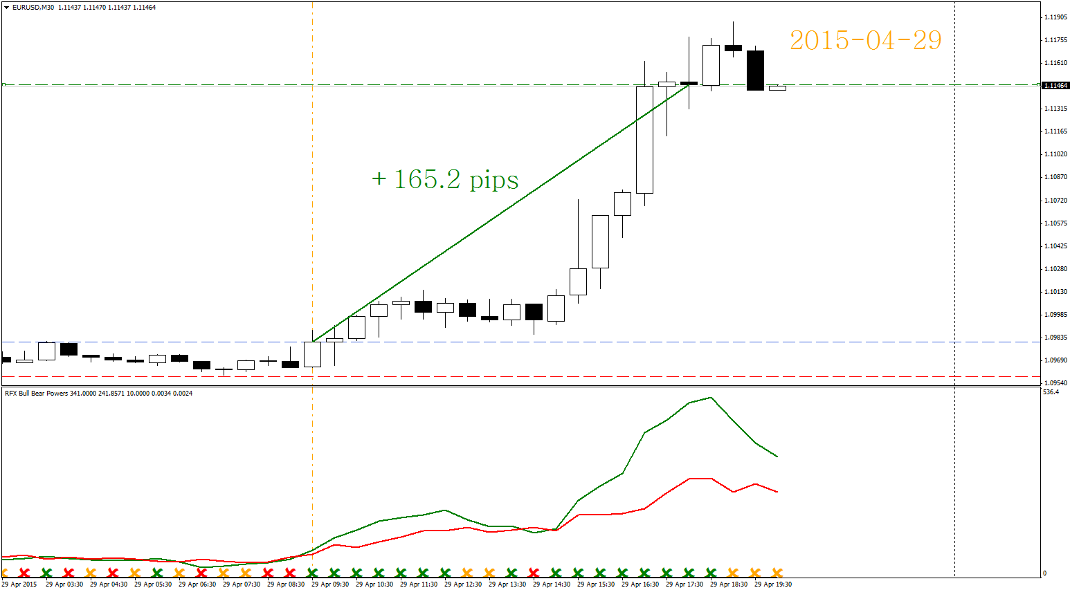Today (2015-04-29) trade, EURUSD, M30
