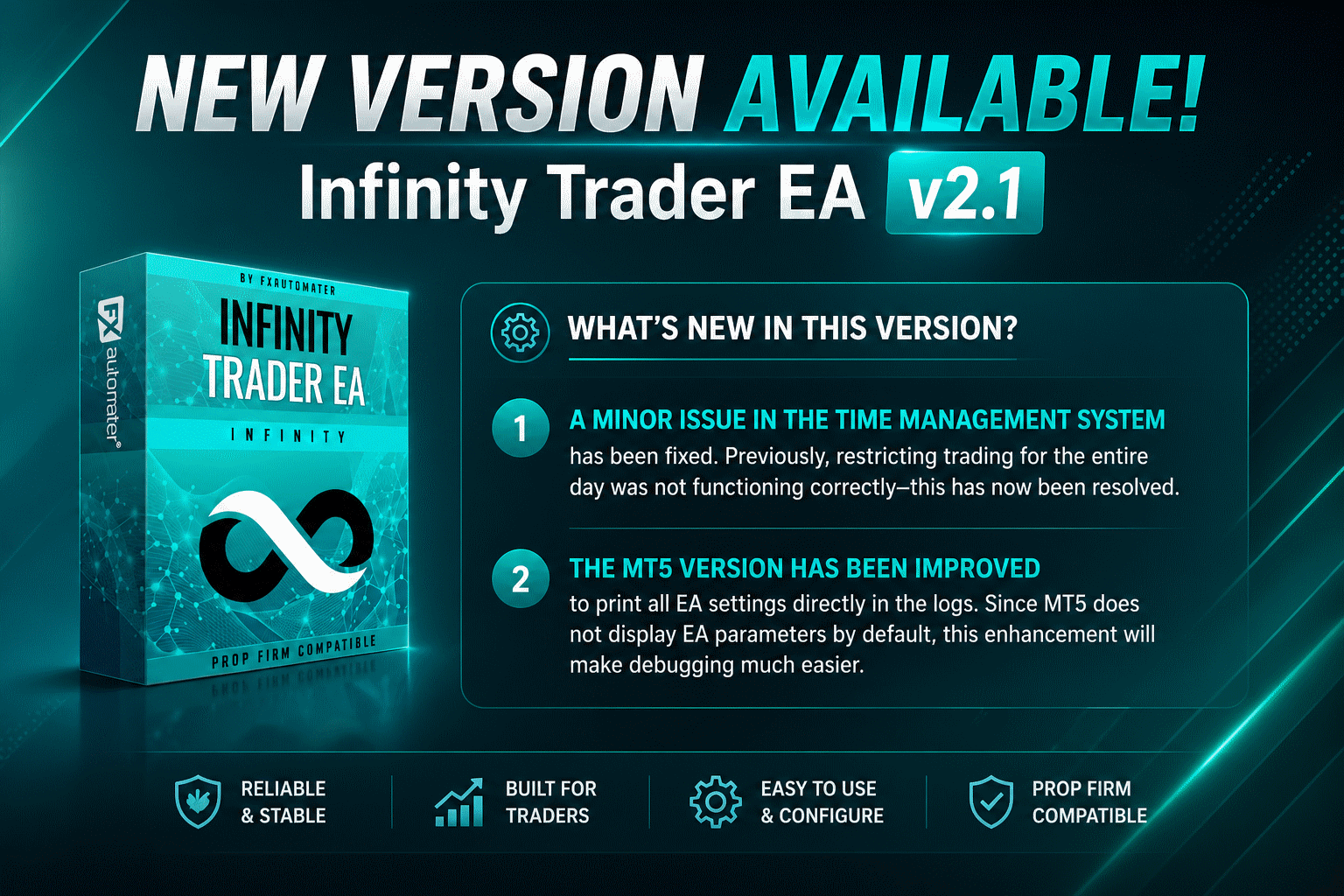🎉 We’re pleased to announce that Infinity Trader EA has been updated to version 2.1. Here’s what’s new: