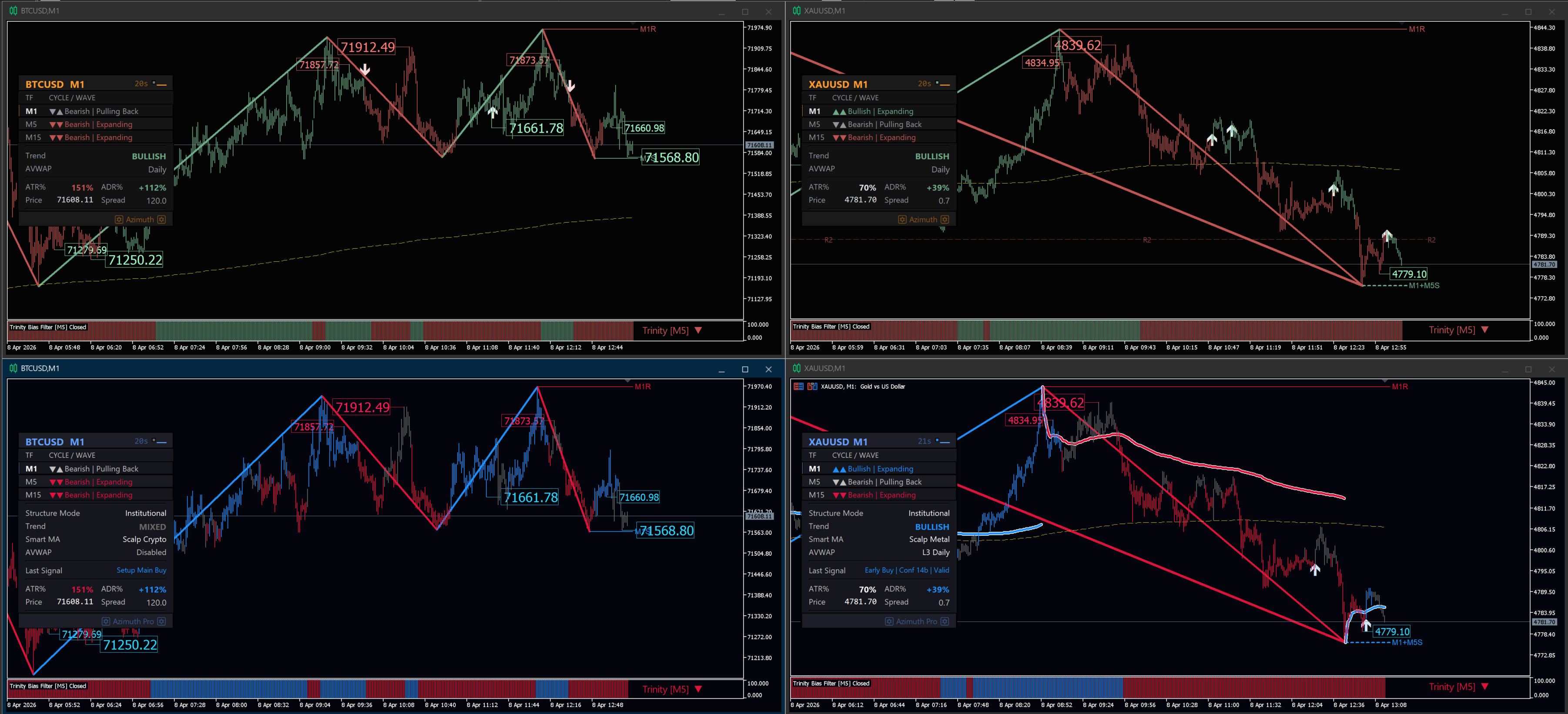 Azimuth Pro identifies structure. The Oracle confirms momentum across timeframes. Together = high-probability setups.