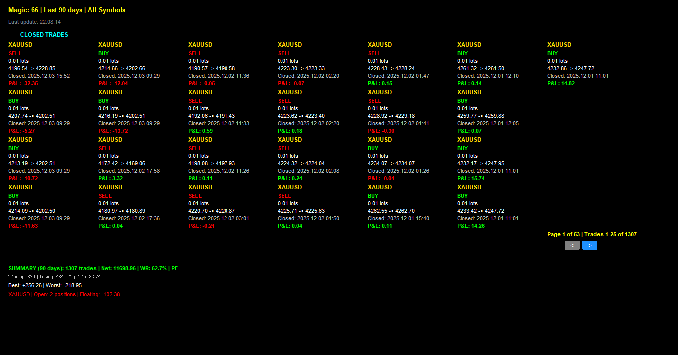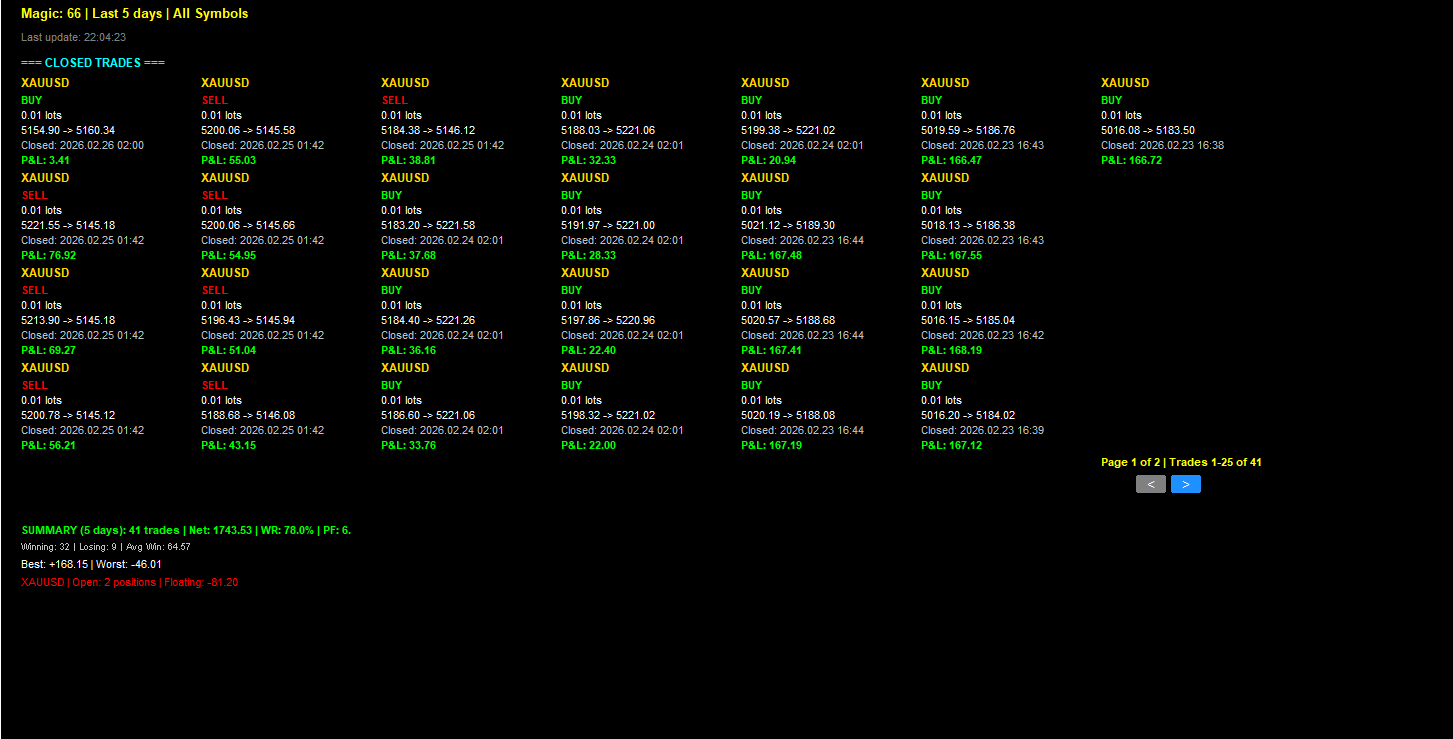 From high-frequency scalping to trend-following strategies, my EAs are built to execute trades with speed, accuracy, and discipline—freeing you from emotional reactions and enabling you to trade with confidence.