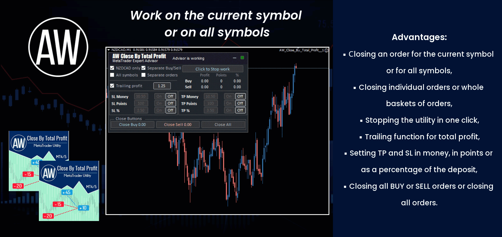 🔹 This is a utility for closing orders or baskets of orders for the total profit or loss 🔹