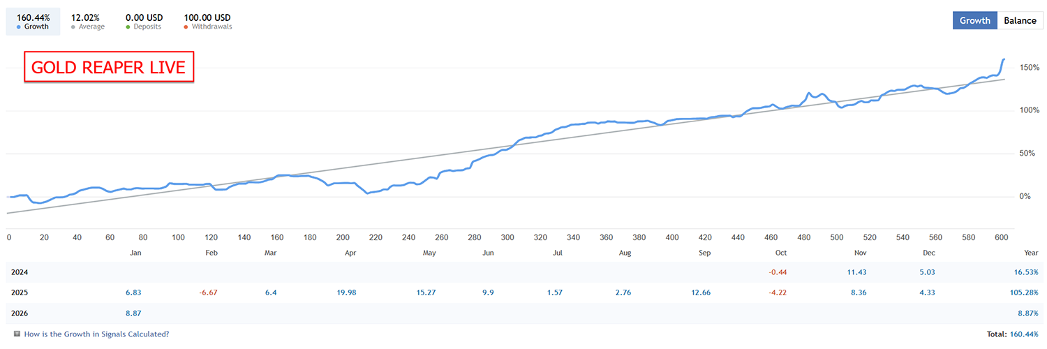 For nearly two years, Gold Reaper’s proven strategies have been crushing it, consistently hitting **new all-time highs** in 2025! 🔥 Built on rock-solid foundations developed almost two years ago, this trading robot delivers **unmatched performance** and reliability. 💪