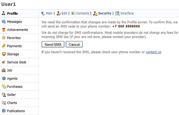 Ahora debe recibir una confirmación SMS, para eso haga clic en el botón "Enviar SMS". El envío del mensaje es gratis.
