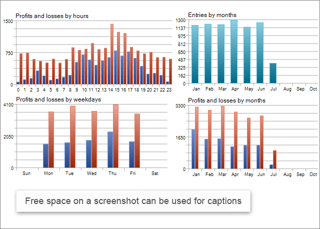 Un Expert Advisor (robot de trading) est le produit le plus populaire sur le marché. La majorité des développeurs utilisent des captures d'écran du testeur pour accompagner la description du produit. Prenez un certain nombre de captures d'écran qui illustrent l'ensemble du processus de test et montrez-les dans le bon ordre.