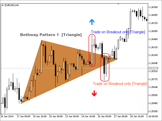 Le concepteur a opté pour une plus grande échelle de la carte et un schéma de couleurs standard « Noir et Blanc ». Le nom du graphique a été supprimé, la police et la couleur du nom du motif ont été modifiées et les points de la cassure du triangle ont été contournés en rouge. Les flèches de la rupture du triangle ont des couleurs traditionnelles. Une telle capture d'écran n'a pas de détails excessifs et ne montre que l'idée principale.