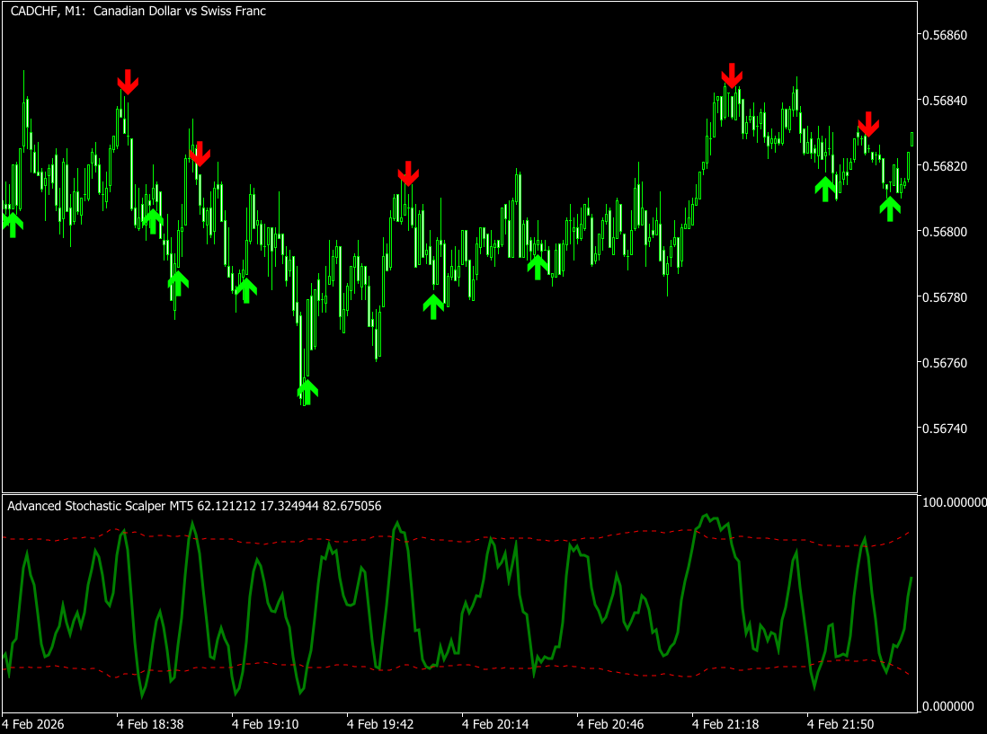 Pas de magie. Pas d’IA en « boîte noire ». Juste du trading pur, transparent et basé sur des règles, en utilisant l’Advanced Stochastic Scalper sur CADCHF en timeframe M1.