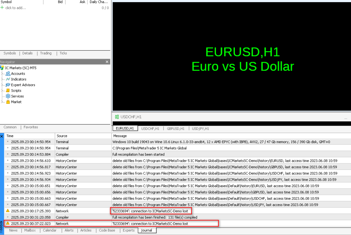 Mais depuis 48 heures, plus rien ne semble pouvoir se connecter sur aucun des comptes et chez aucun des brokers. J'ai contacté les supports des brokers et mon fournisseur de VPS et ils m'ont informé qu'ils n'avaient appliqué aucune restriction de leur côté.