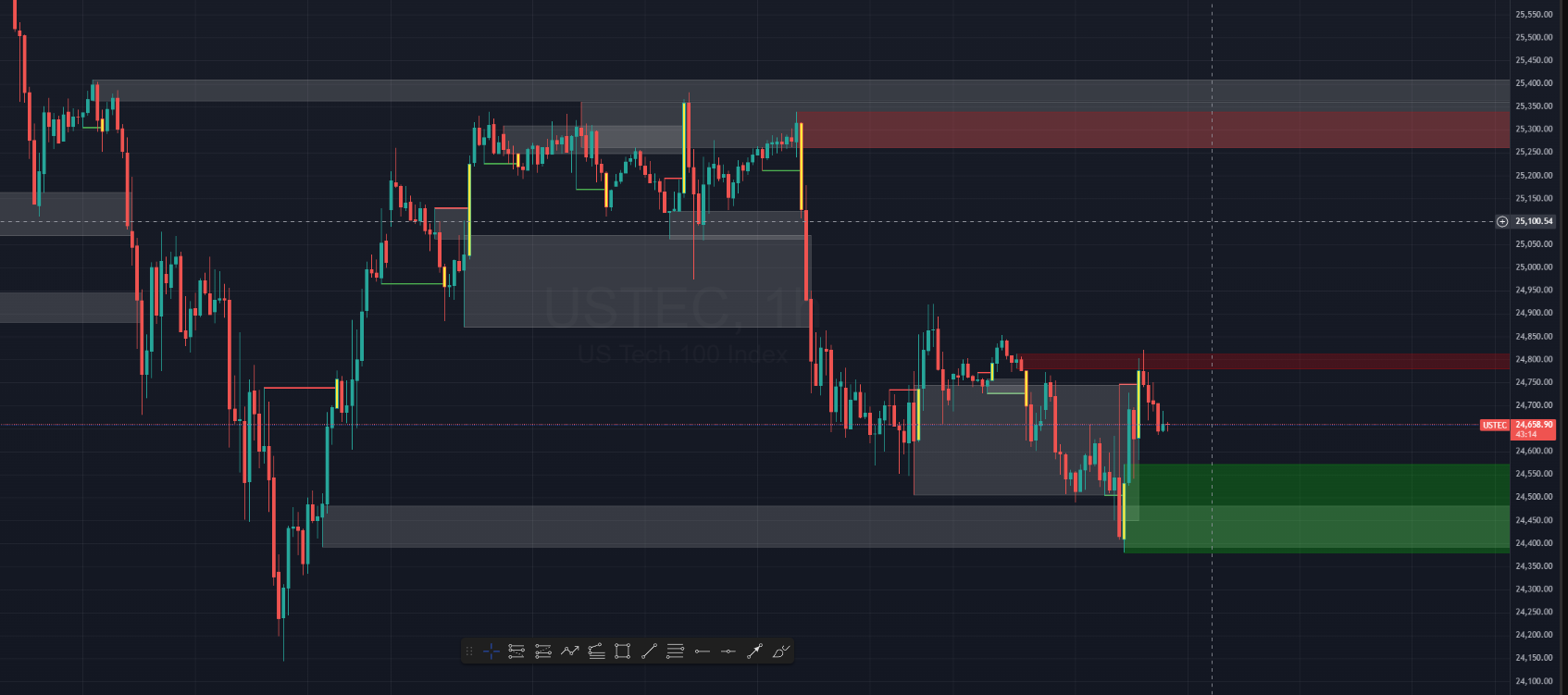- Entry and exit rules (based on BOS and OB logic)