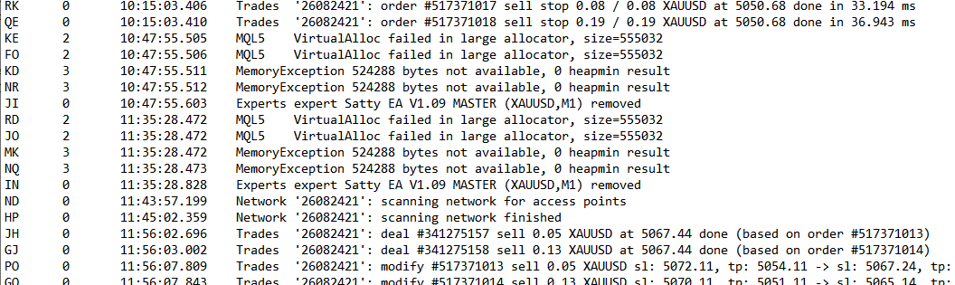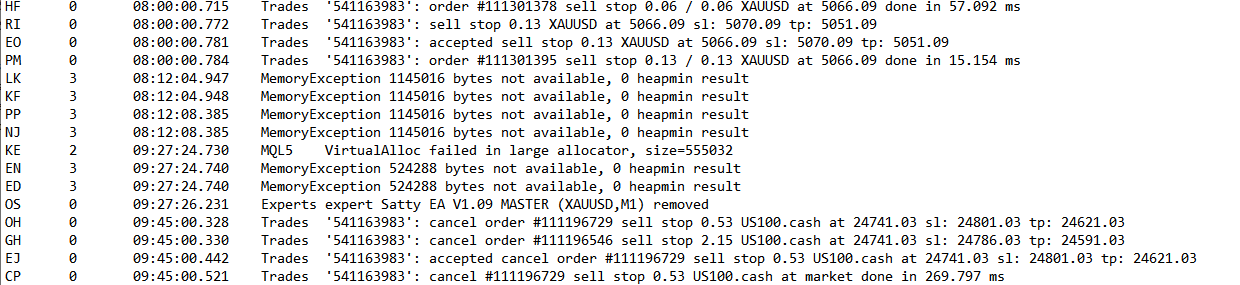 Recently it has stopped placing orders later on in the trading day. My VPS provider reviewed the MT5 and Windows logs and believes the issue is caused by memory/RAM usage steadily increasing over time until system memory becomes exhausted. Once this happens, MetaTrader begins producing errors.