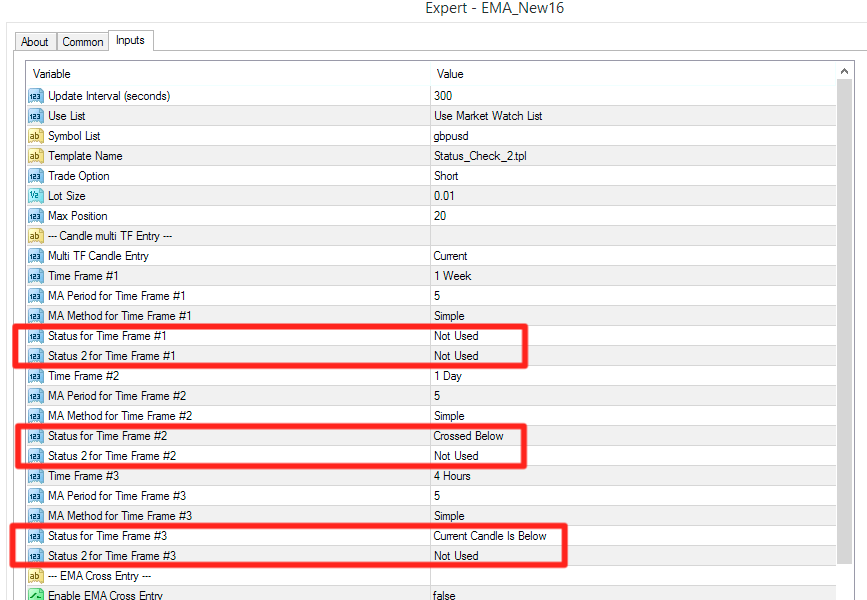 1. The EA essentially either opens a trade if the current bar is above/below the set EMA across multiple time frames, or it will open the trade if two EMA’s cross above or below each other. 2. It displays all currencies meeting the open requirements on the chart.