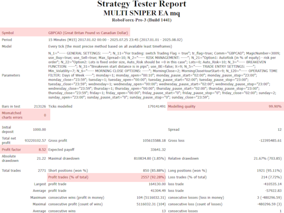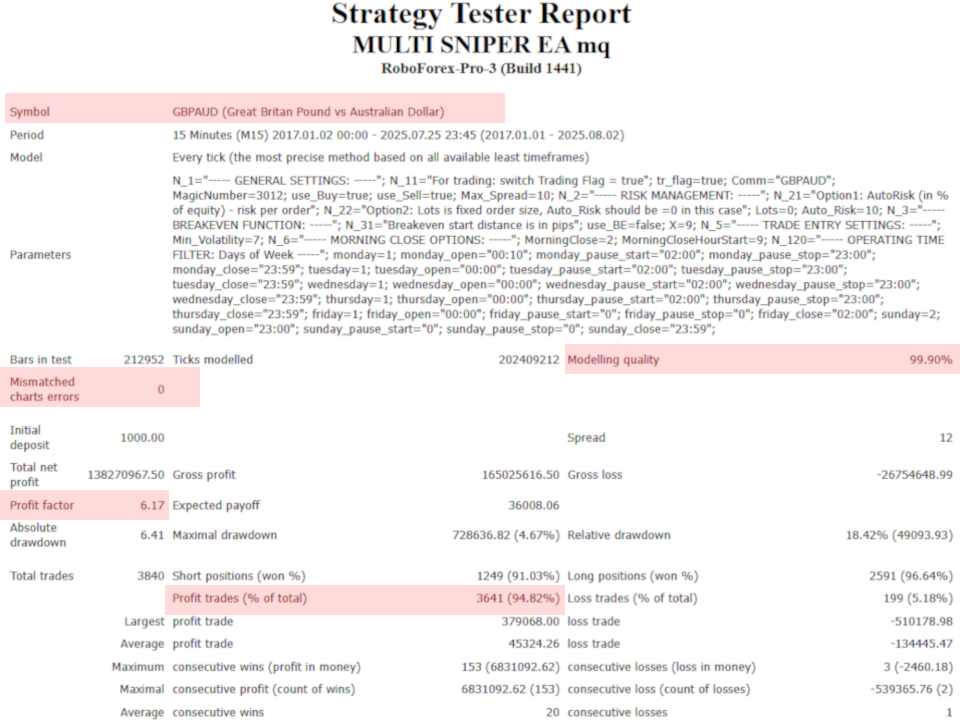- Les paires les plus recommandées sont GBPCAD et GBPAUD. Les fichiers Set_file correspondants sont disponibles dans la section « Commentaires ».