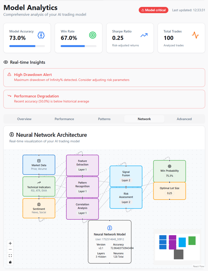 - Pattern Recognition - Identifies complex trading patterns invisible to traditional algorithms