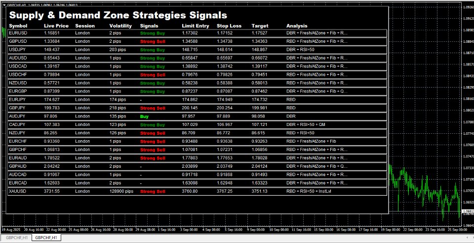 - Core Strategy Engine: Automatically identifies classic and effective Supply and Demand patterns, including Rally-Base-Drop (RBD) and Drop-Base-Rally (DBR).