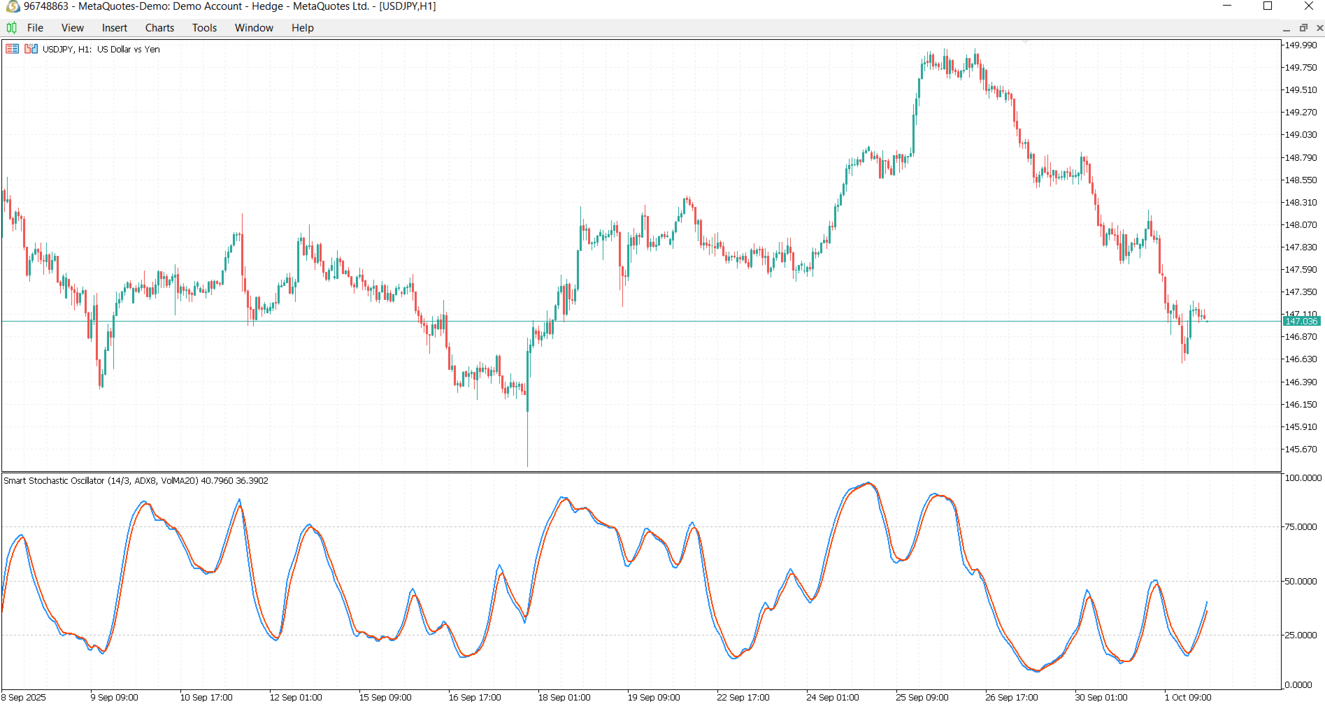 Clear Visuals – Smooth and color-coded %K and %D lines make reading signals intuitive.