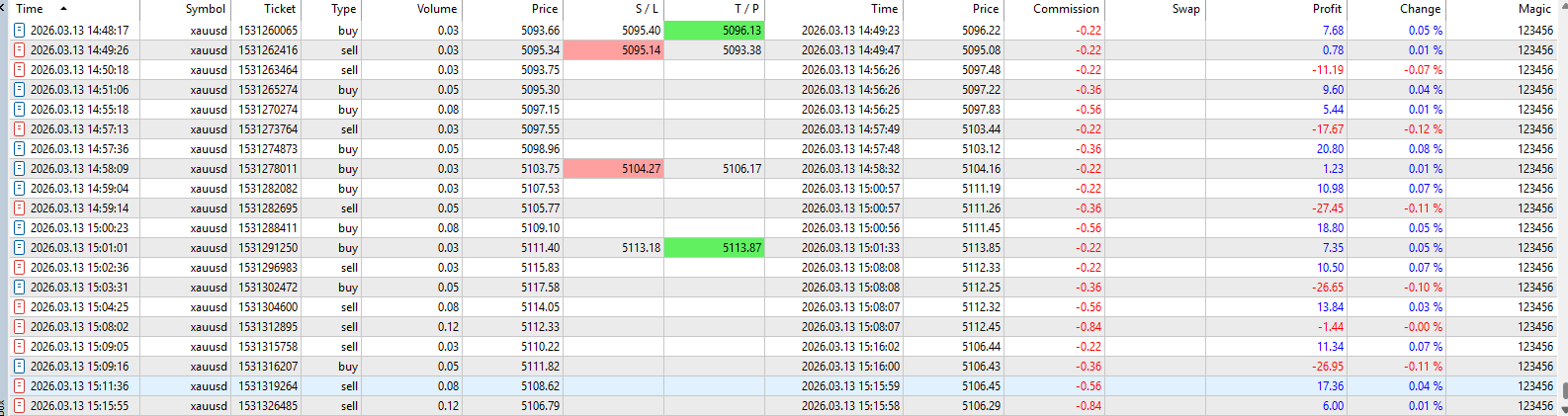 Sharing a snippet of today's results from my IC Markets Raw demo account using the default setting by the developer and it reached the target profit of 100. I chose the lot size of 0.03 for a 5k account because it uses a grid hedging system and you need enough capital and stick to the recommended daily target profit of 100 which is achievable and I am happy with the results.