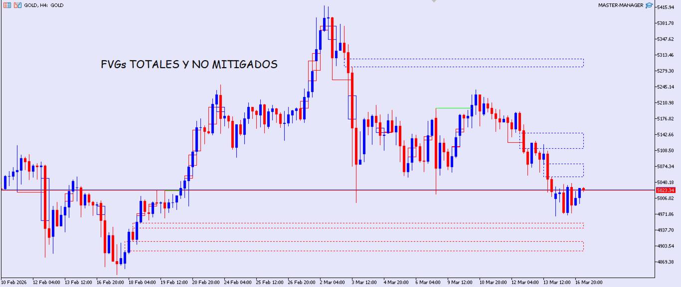 • Dynamic Extension: Unmitigated FVGs extend as segmented areas up to the current candle, marking liquidity magnets.