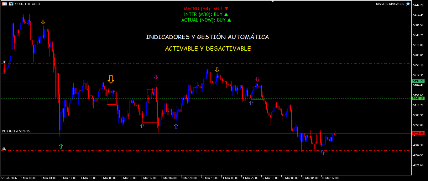 The Master Manager is not a conventional auto-trading bot; it is a precision tool designed to assist the manual trader. Its core combines Price Action with Institutional Liquidity (FVG) and a Triple Timeframe Confluence system.