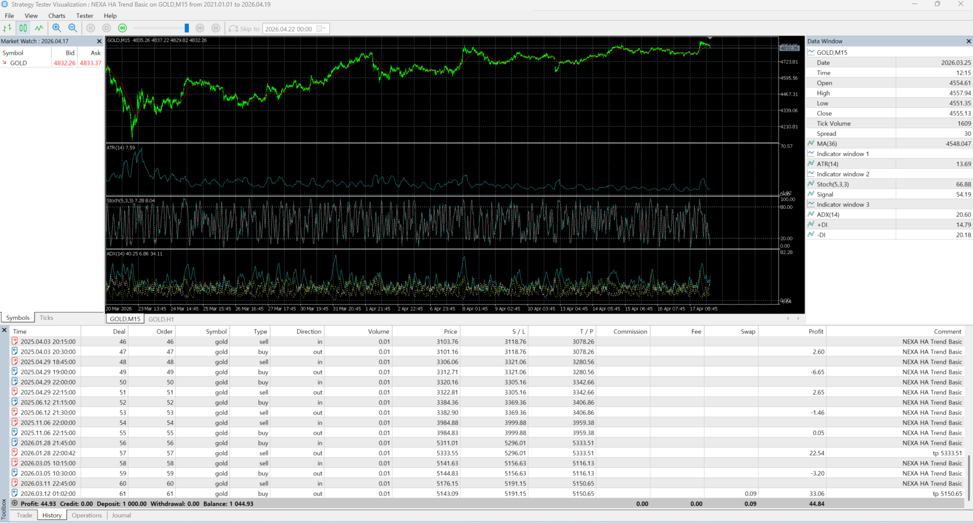 NEXA HA Trend Basic est un Expert Advisor de trading automatique conçu pour réduire le bruit du marché à l’aide des bougies Heiken Ashi et identifier des opportunités de trading dans la direction de la tendance dominante.