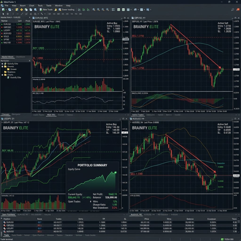 Imaginez une expérience de trading où le chaos du marché se transforme enfin en un flux clair et prévisible d'opportunités. Lorsque vous commencerez à explorer les capacités de Brainify Elite, vous remarquerez un changement dans votre perception du risque de marché. Ce n'est pas qu'un simple Expert Advisor ; c'est une extension de l'intelligence de niveau institutionnel, conçue pour protéger votre tranquillité d'esprit tout en vous permettant de réaliser votre vision financière.