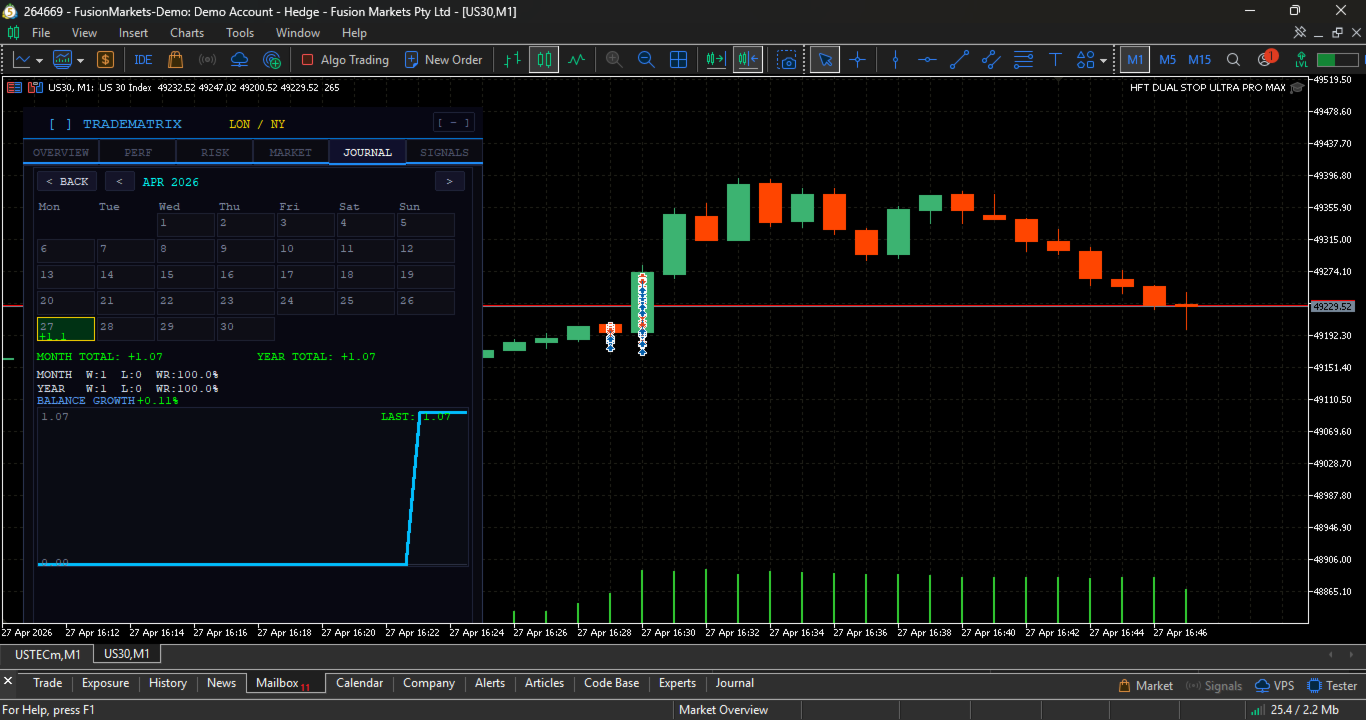 TRADEMATRX is a professional trading panel built for MetaTrader 5 that combines risk management, performance analytics, indicator signals, and trade journaling into one seamless interface. Designed for traders who demand precision and flexibility, TRADEMATRX helps you trade smarter, faster, and with complete control.
