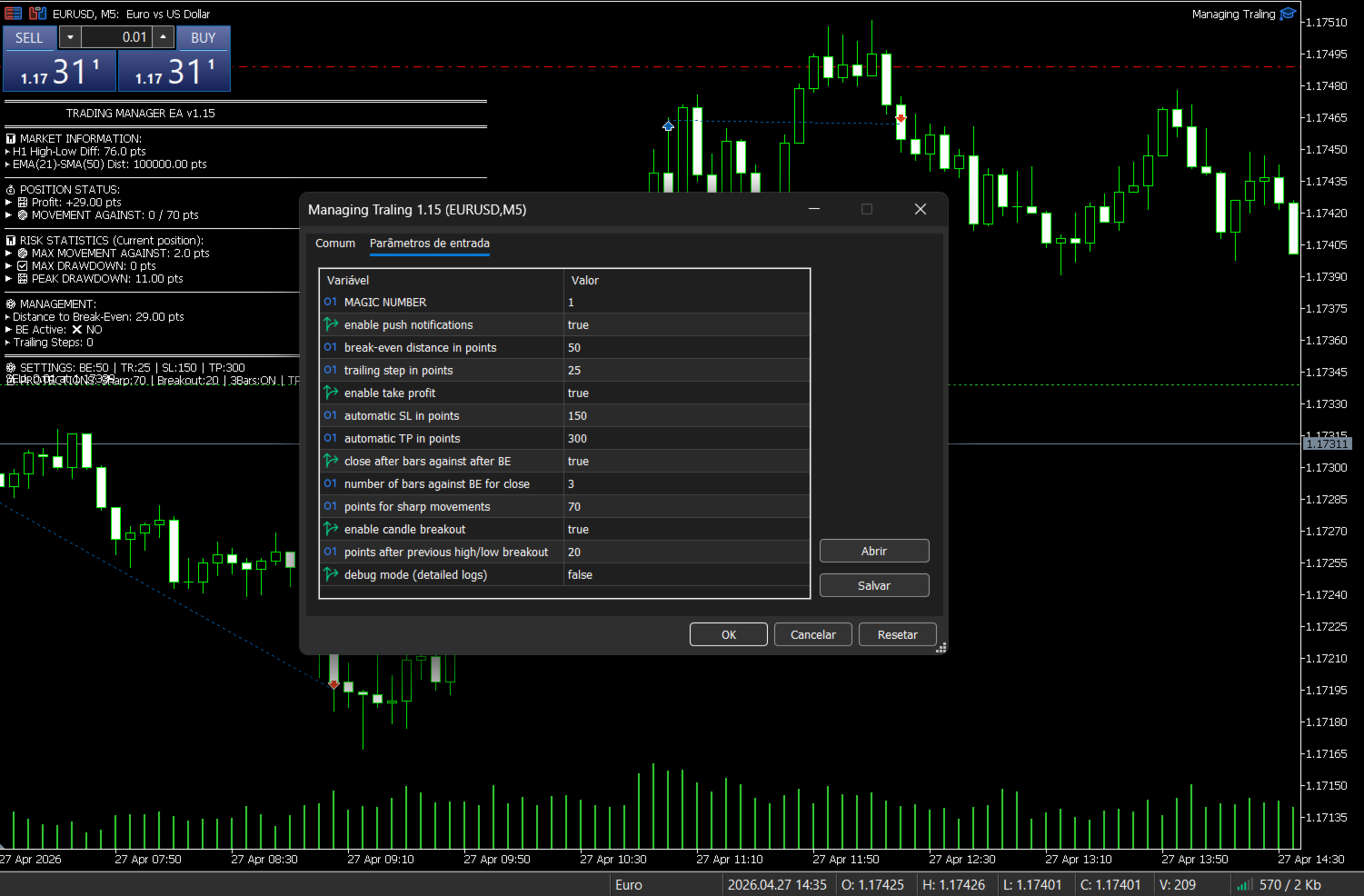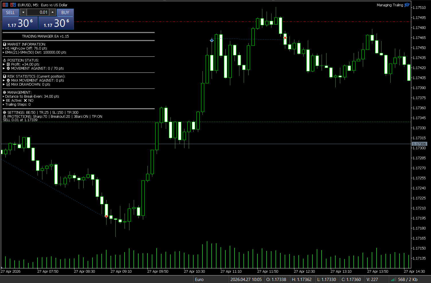 Managing Traling – Advanced Trade Management EA (Position Manager) Managing Traling is a professional Expert Advisor focused on intelligent position management, designed for traders who want to maximize profits and reduce risk with advanced automation. This EA does not open orders automatically — it acts as a complete manager, applying sophisticated protection and optimization rules in real time.