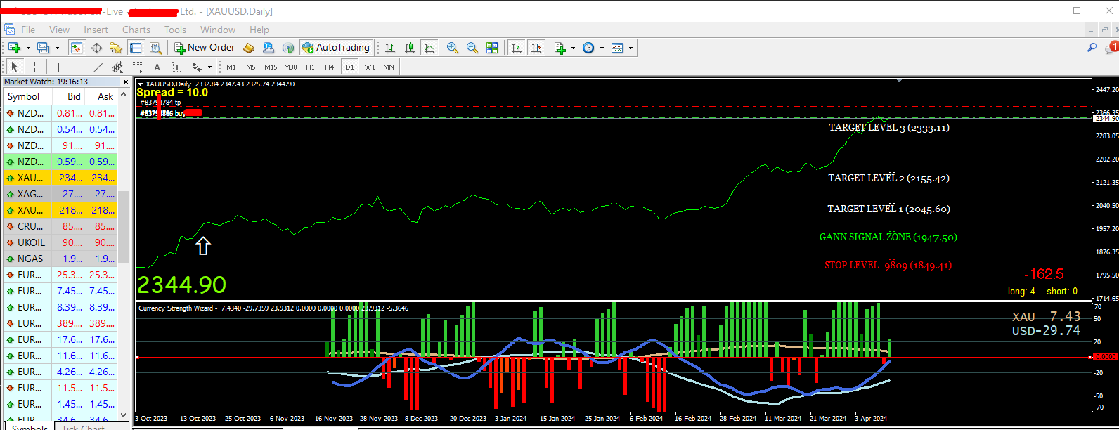 in xauusd... after opening the diary and seeing that the gann arrow is up (and it already appeared a while ago) what would the entry criteria be?
