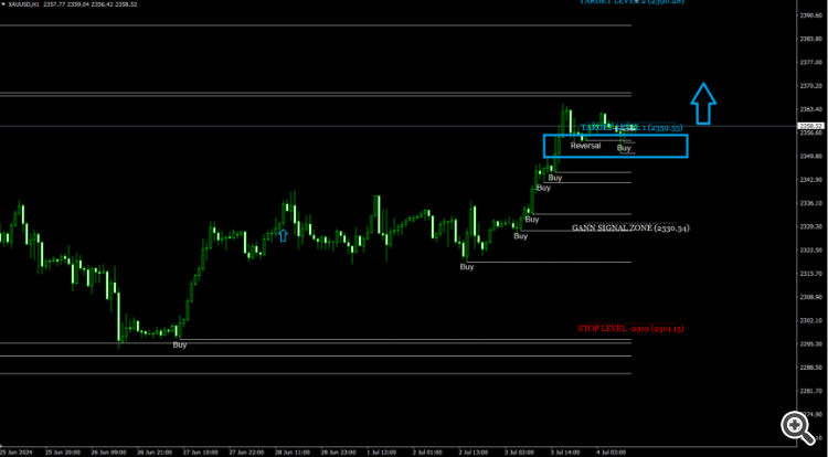 As you can see the Gann indicator allows you having more than one entry in the direction of the signal. Moreover you can have a new entry even when you're late and missed the signal. So like in the situation above I suggested BUYING XAUUSD as we had a BUY signal from the Gann Made Easy indicator and a strong BUY pattern which I recommend to follow which is the combo of the Reversal and BUY zone in the direction of the Gann's signal. Actually the way like I teach in the trading instructions.