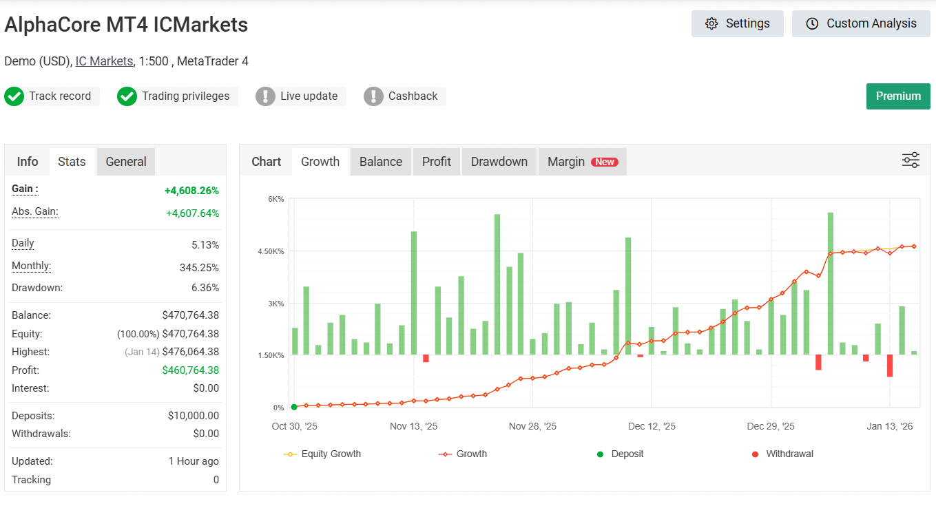 Free version of the AlphaCore System MT4 Expert Advisor for 1 month, until February 6, 2026.