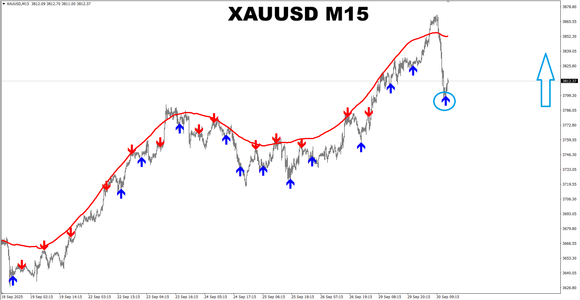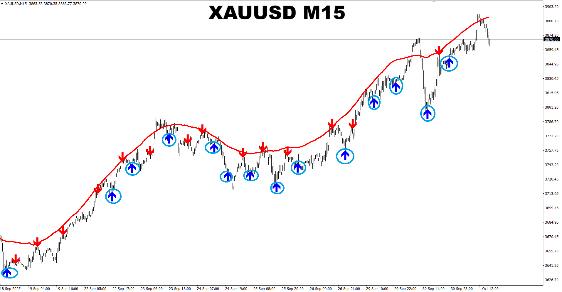 M1 SNIPER system. XAUUSD M15. Recent signals. When we trade towards the Dynamic SR line, we take BUY signals when the line is red because it is dynamic resistance in such case. Opposite conditions will be for SELL type signals. Signals which are at the SR line or very close to it are not valid. Trading towards the Dynamic SR line is the safest way to trade using the M1 SNIPER system as in this case the Dynamic SR line works like a magnet and pulls the price towards itself. Plus the Dynamic SR line can be used as the main target when the price touches the line.
