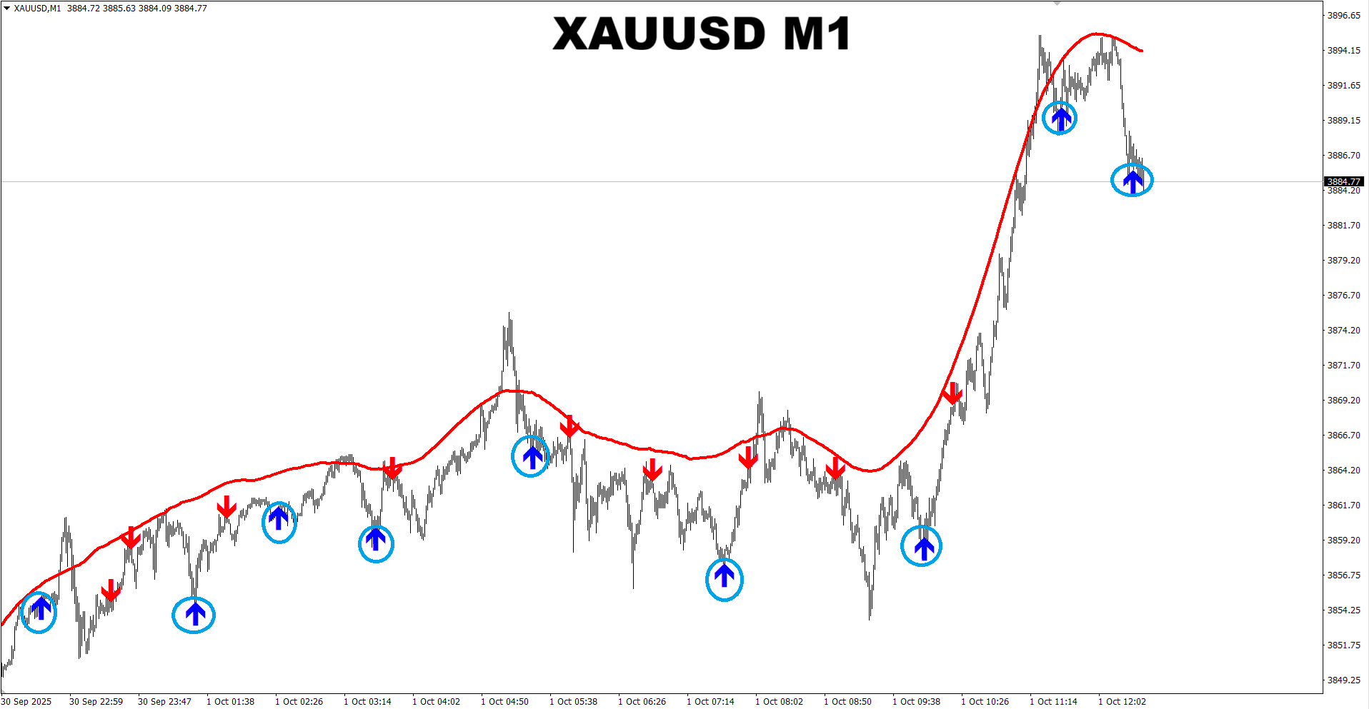 M1 SNIPER system. XAUUSD M1. Recent signals (put in circles) for trading towards Dynamic SR line. Trading towards the Dynamic SR line is the safest way to trade M1 charts using the M1 SNIPER system as in this case the Dynamic SR line works like a magnet and pulls the price towards itself.