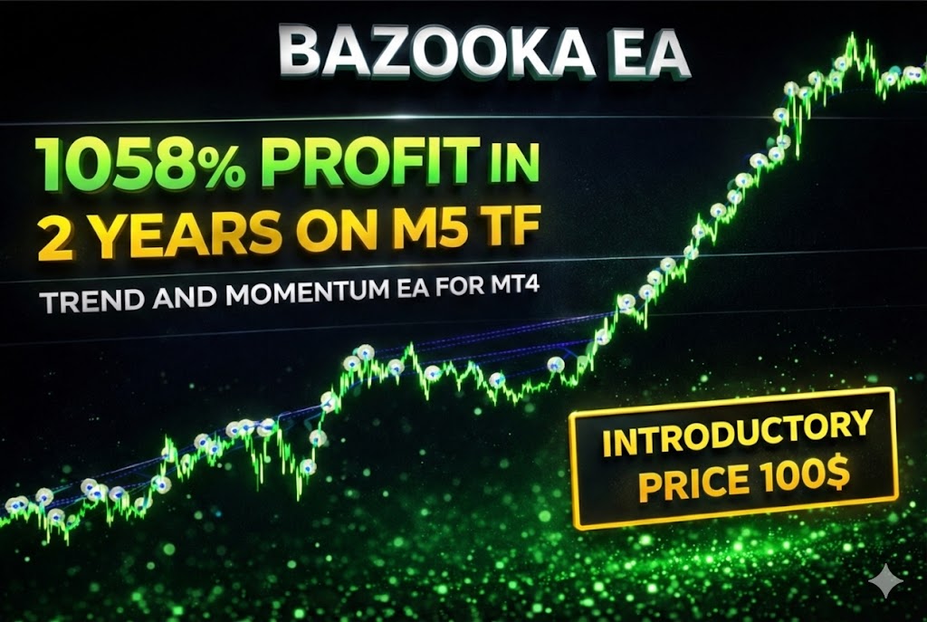 5 copies left for Bazooka EA's introductory price of 65$! next price 150$ ! https://www.mql5.com/en/market/product/161154 New version uploaded and new set files uploaded as well in comments section. Buyers contact me to get new detailed User Guide! Default settings of EA now is for M5 timeframe Gold, BAcktest with Open Price method only on Gold M5 from 2024 till today
