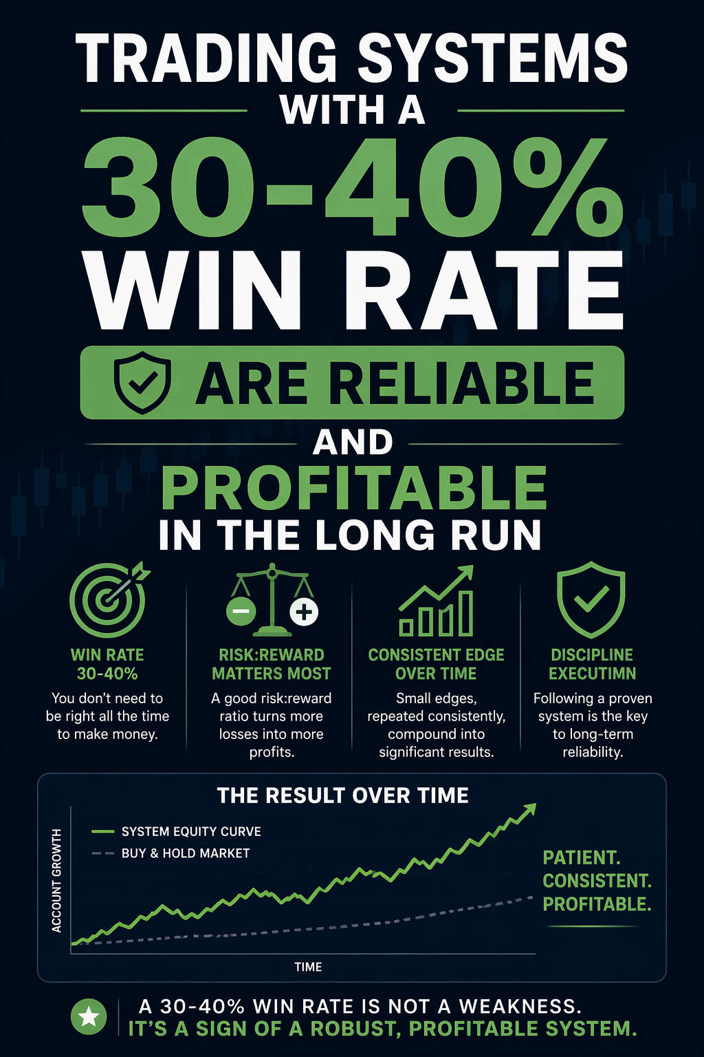 You can see how and why a trading system with a 30-40% win rate is profitable in the long run.