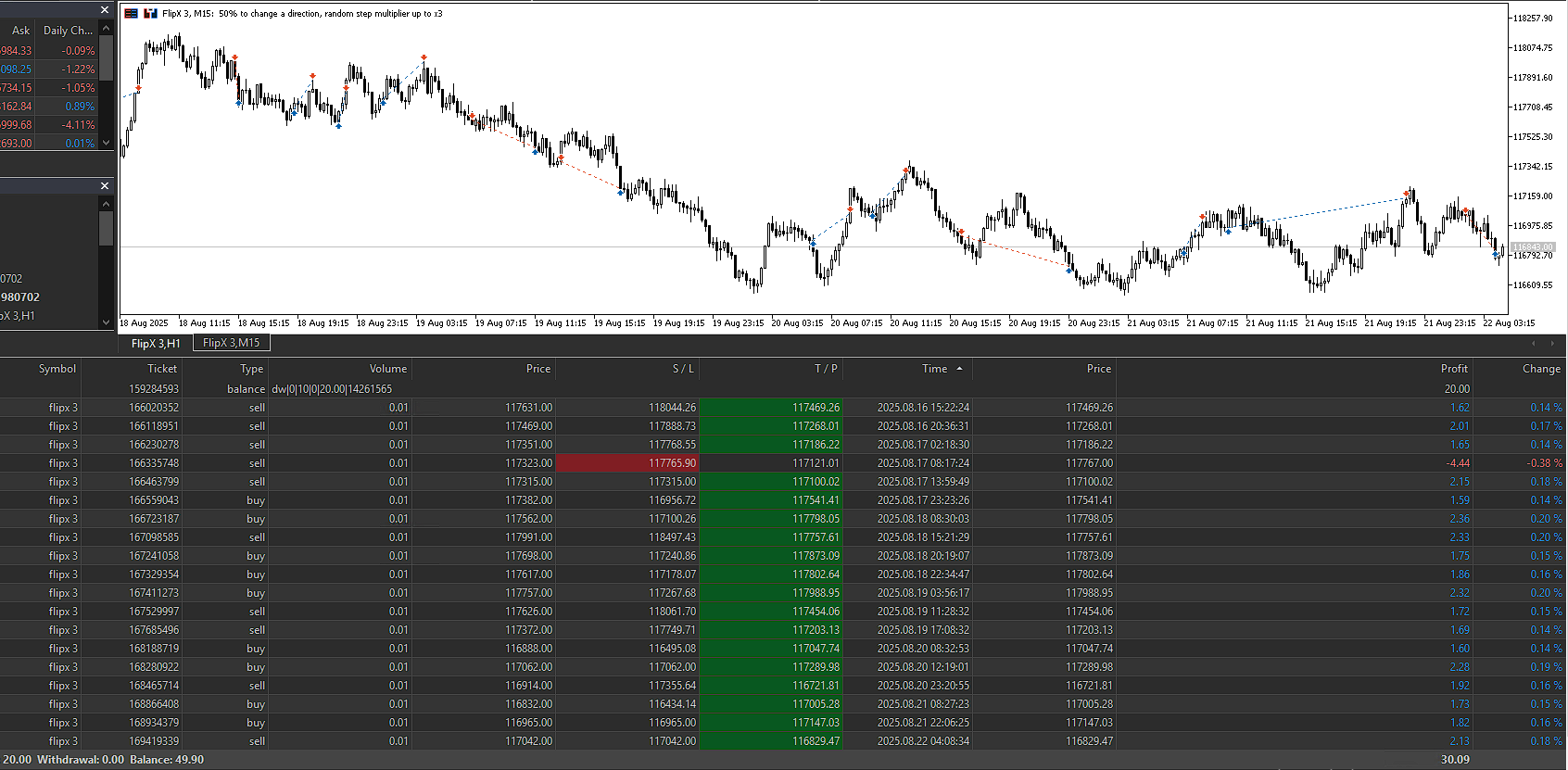 EA GainX 400 – Weltrade (Synthetic Indices | M15) Minimum Recommended Deposit: 50 USD GainX 400 is a specialized automated trading system designed exclusively for Synthetic Indices on the Weltrade broker. It operates on the M15 timeframe, targeting directional momentum expansions. The strategy follows a High Ratio structure, meaning it accepts small, controlled losses while aiming for large winning moves that more than compensate drawdown periods—producing a steady and scalable equity curve