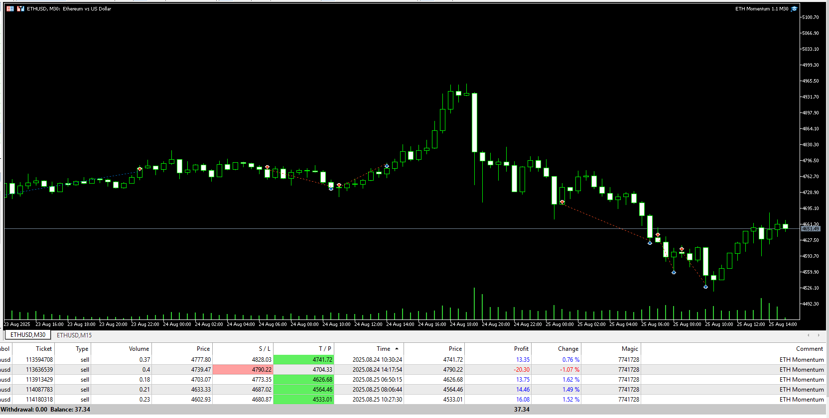 The ETH Momentum M30 EA is running on real live trading, fully optimized for Exness.