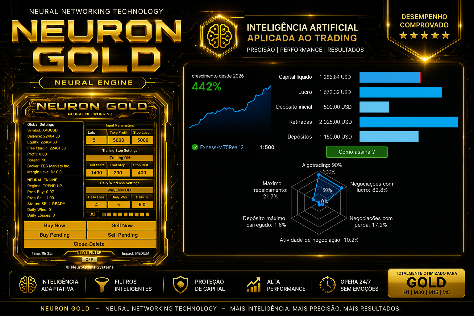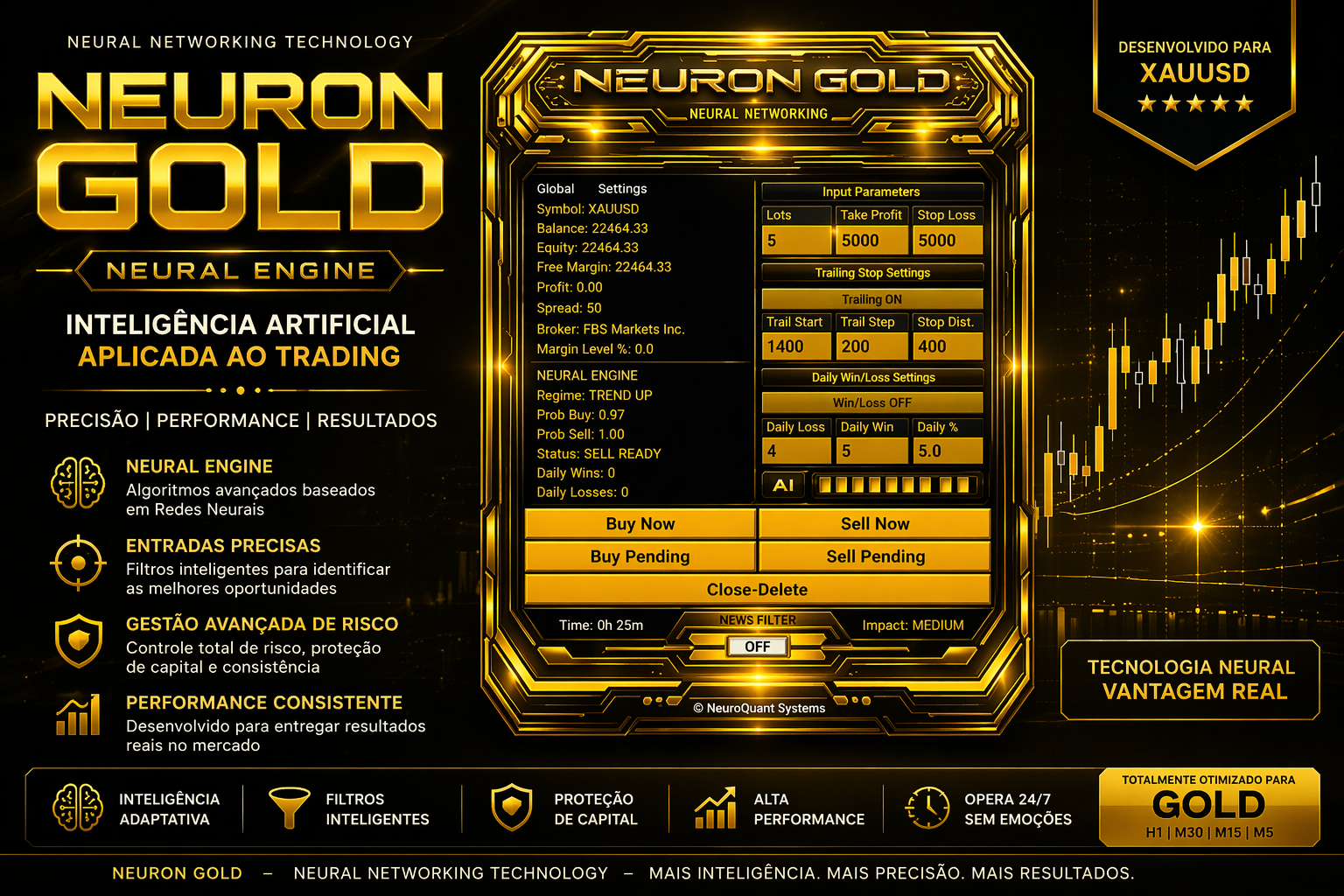 O Neuron Gold é um Expert Advisor avançado desenvolvido pela Neuro Quant Systems, empresa especializada em soluções de trading automatizado e inteligência artificial aplicada ao mercado financeiro.