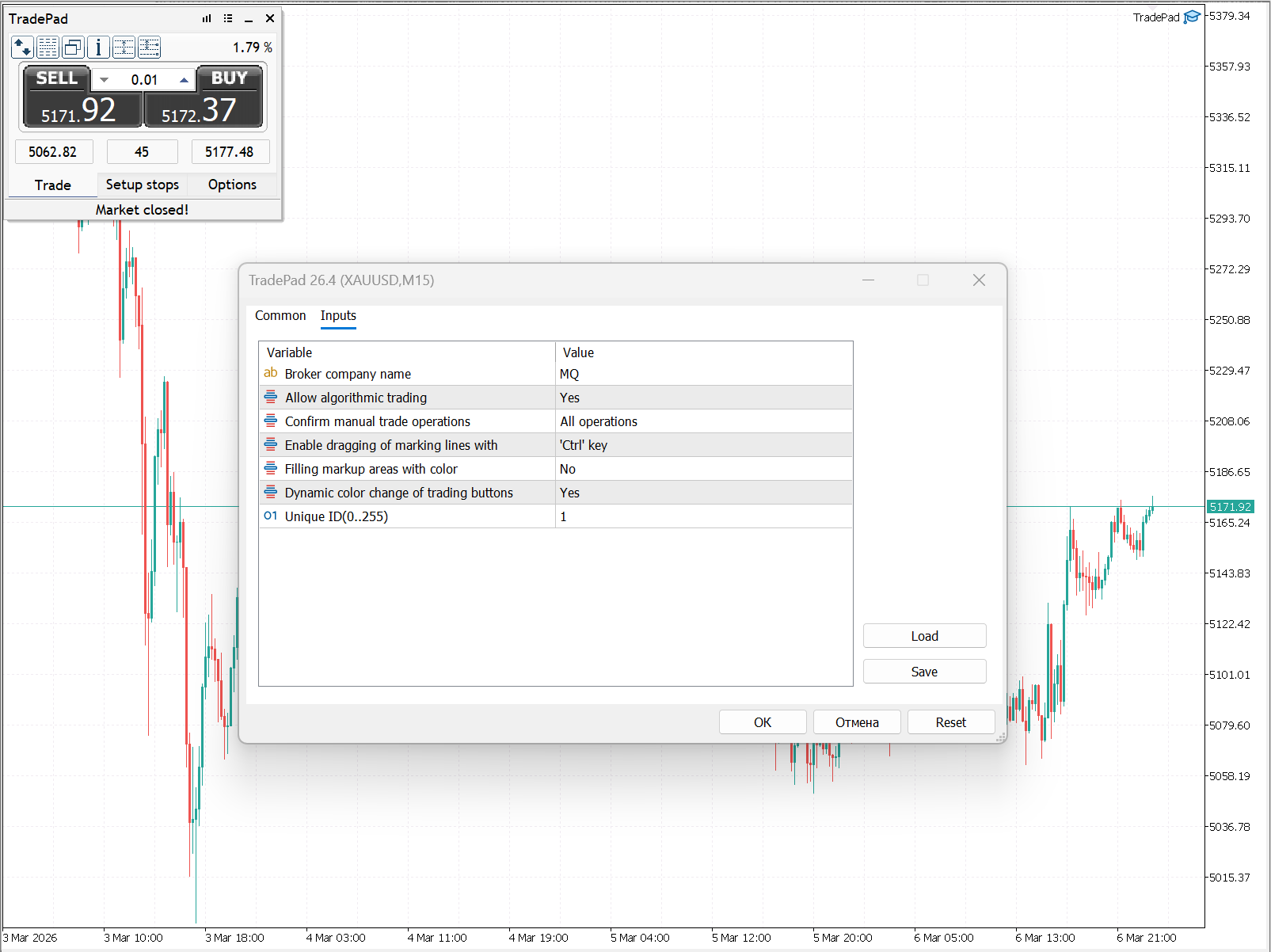 TradePad è uno strumento per il trading manuale e algoritmico per il terminale di trading MetaTrader 5. Nonostante la presenza di molte soluzioni simili sul mercato, TradePad include una serie di strumenti utili e necessari per il lavoro quotidiano. I seguenti strumenti sono disponibili per i trader nell'arsenale di TradePad: