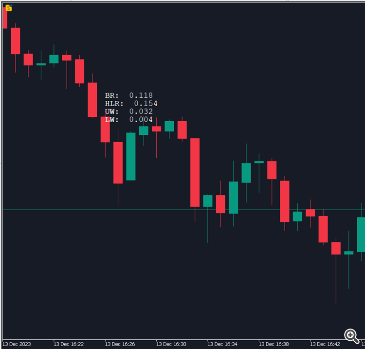 Fare clic sulla candela per vedere il suo body range, il range alto-basso, il range di wick superiore e il range di wick inferiore.