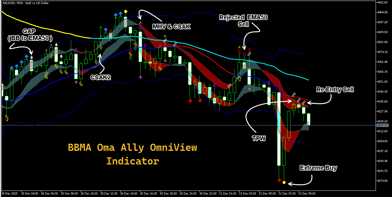 This indicator allows you to immediately see what is happening in price movements without missing a single signal. It is like a bird's eye view for BBMA fans.