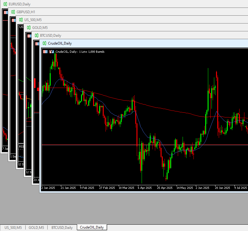 perchè quando apro i grafici non mi compaiono anche sotto, sulla barra di passaggio tra charts?