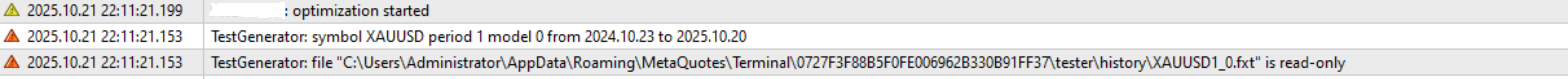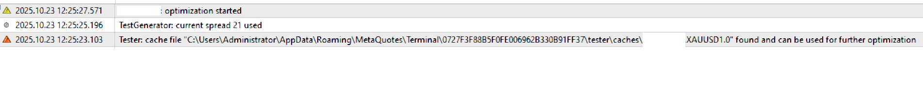 Non si tratta di un errore. Ti informa semplicemente che i risultati di un back-test precedente sono stati memorizzati nella cache e che non sarà necessario eseguire nuovamente il test, ma verranno semplicemente visualizzati quei risultati. Se desideri forzare un nuovo back-test, ricompila il programma o elimina il file della cache.