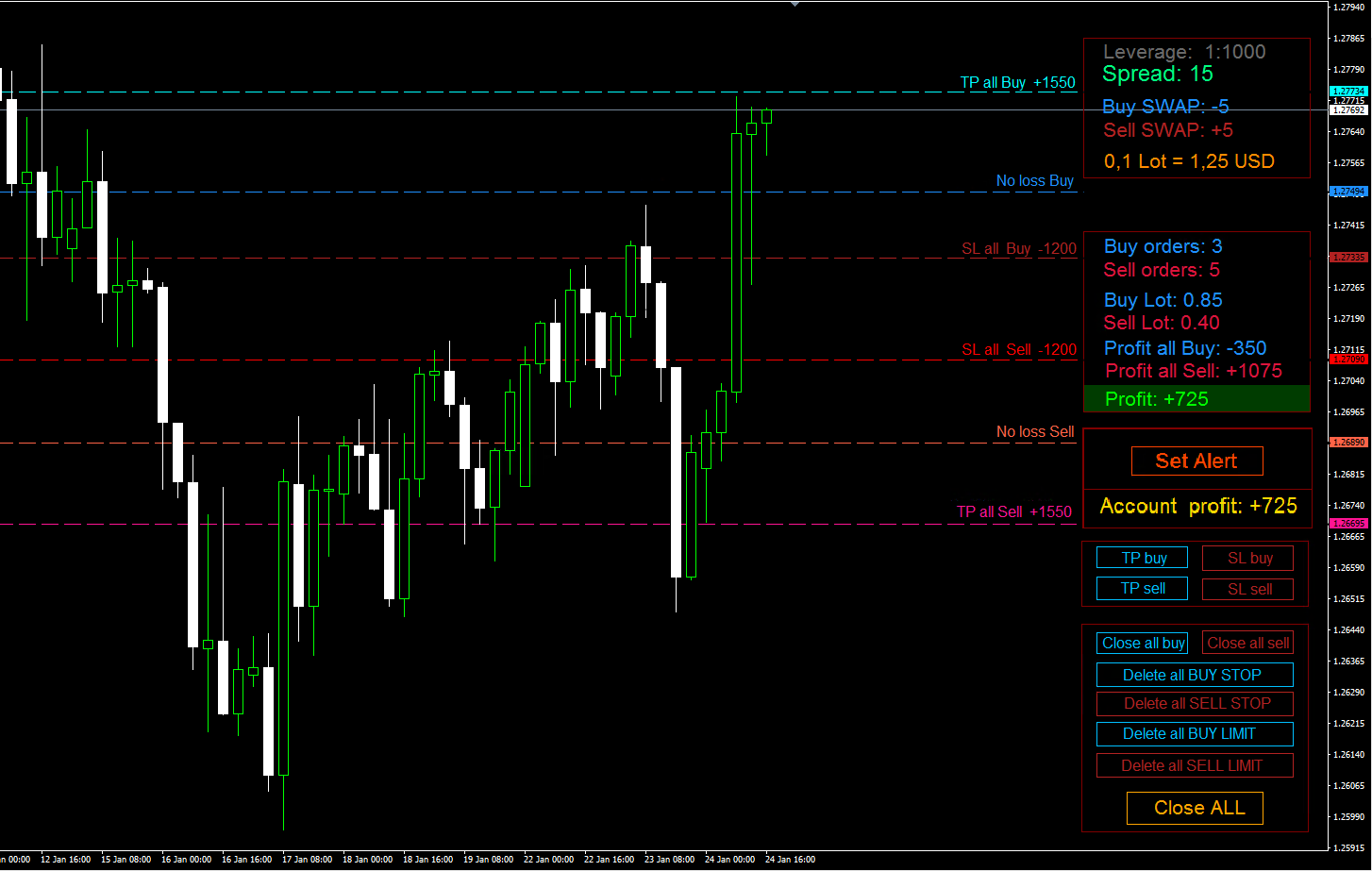 - общего стоп лосса с указанием суммы убытка по всем ордерам одного типа на инструменте