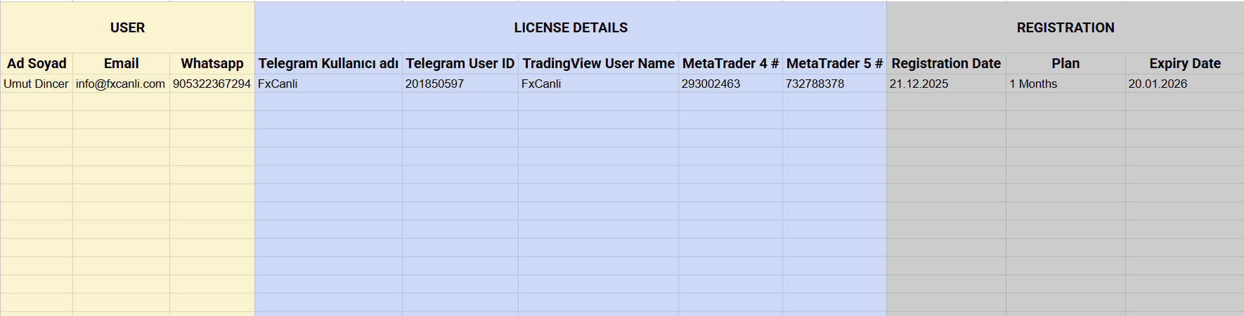 this indicator will reach to my google sheet and if user MetaTrader 4 or Metatrader 5 account number doesnt reach to Exired date, it will go on work.