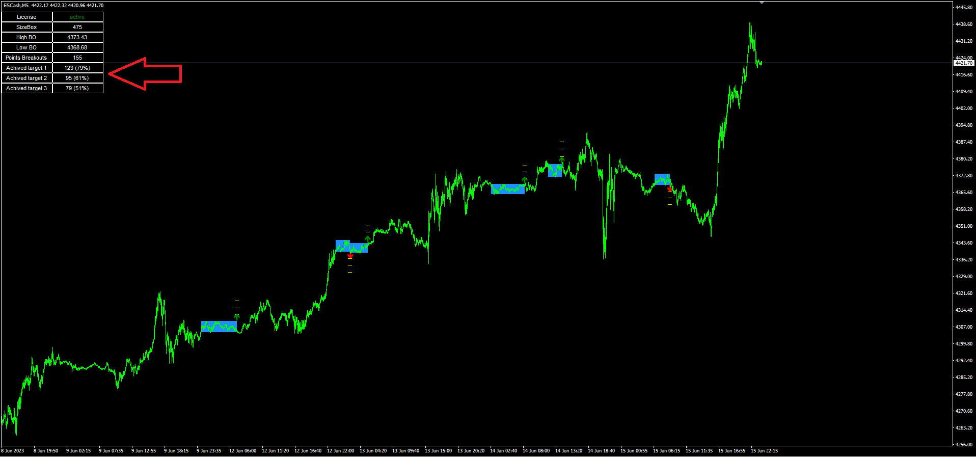 Настройки ESCash m5 спред 40 пунктов (при большем спреде не работать) брокер FX Club Market. Тестирование до первого таргета 79% процентов, порог ноля 65%, следовательно остановить торговлю при 68%. Тестирование до второго таргета 61%, порог ноля 46%, значит остановить торговлю при 49%. Тестирование до третьего таргета 51%, порог ноля 37%, остановить торговлю при снижении до 42%