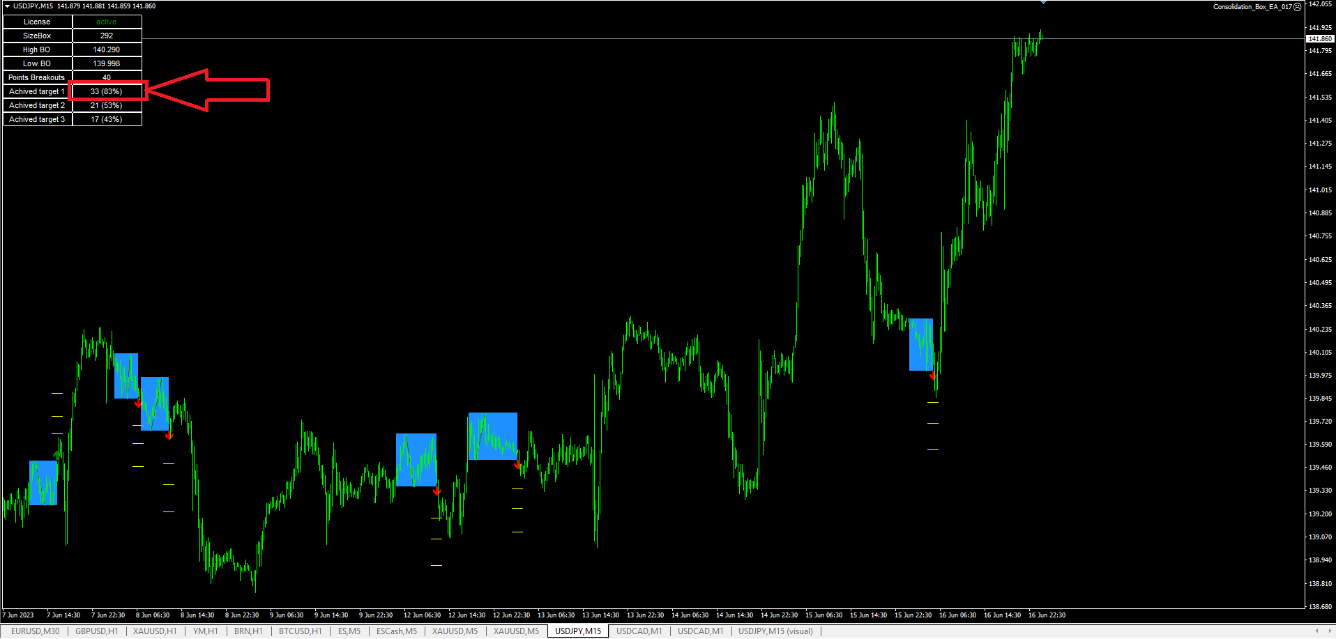 Настройки на USDJPY M15 спред рекомендуем не более 5 пипсов (подбирайте брокера правильно). Мы проверяли на FX Club Market, Alpari Pro ECN, IC Markets Raw, при тестировании 81% вероятности срабатывания первого таргета. Порог ноля 65% - это значит если в блоке статистики вы увидите падение с 81% до 65% - стратегия перестала быть в плюсе, необходимо изменить настройки. Мы рекомендуем торговать до 69%, если станет 68% - остановите торговлю.