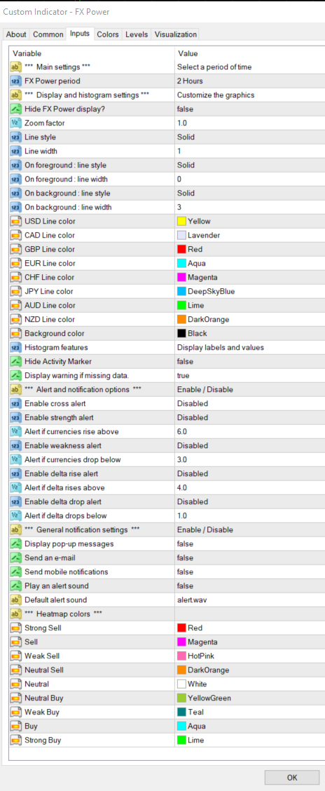 I.e. For the USD strength, it analyses EURUSD, GBPUSD, AUDUSD, NZDUSD, USDCAD, USDCHF, USDJPY, and even XAUUSD.